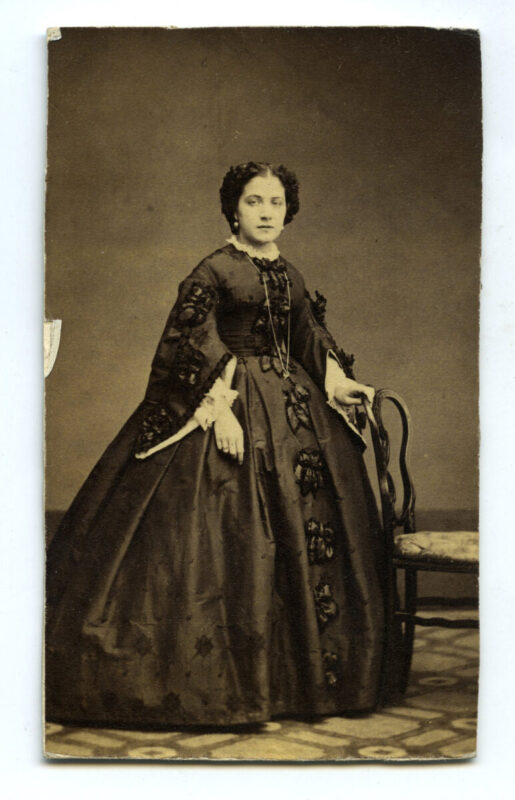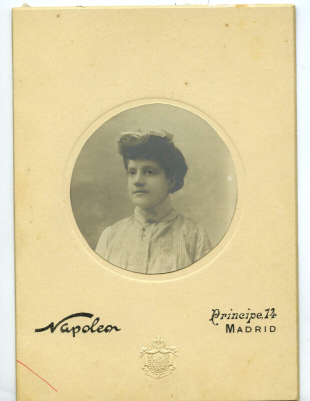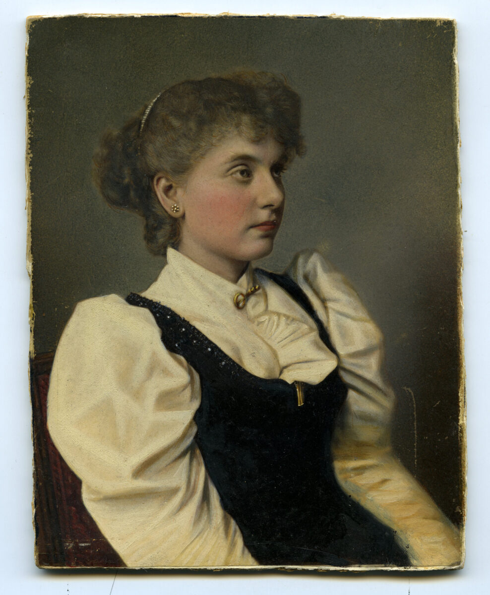 - ANTIGUA ALBUMINA FOTOGRAFIA DE ESTUDIO RETRATO MUJER COLOREADA SOBRE CARTON DURO 14 X 11 CMV – 30 GR