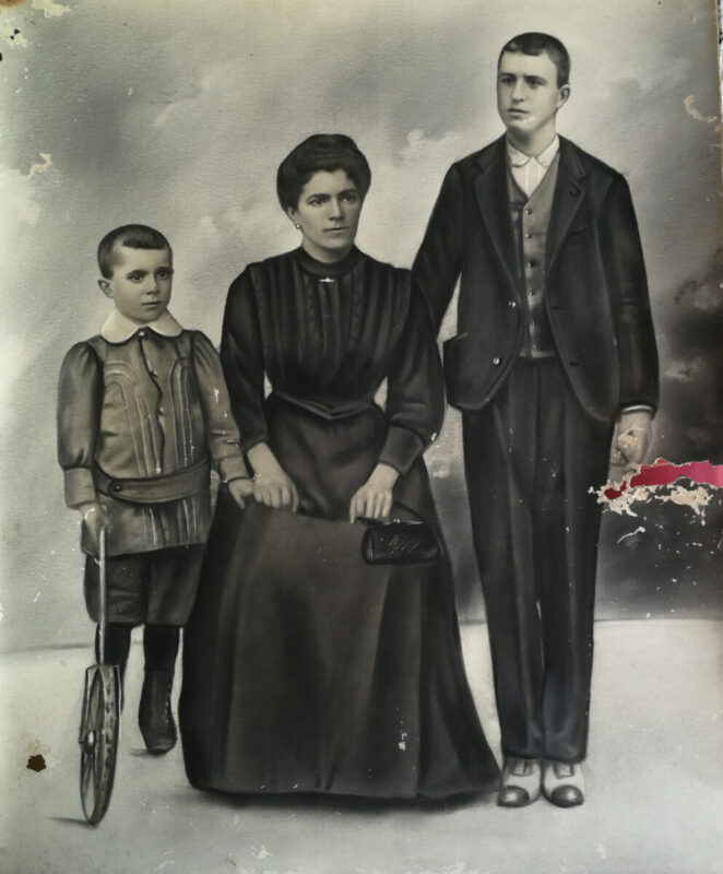 - FOTOGRAFIA FAMILIAR RETOCADA.CATALUÑA. 1920-30.AUTOR DESCONOCIDO.55X45 CMS.