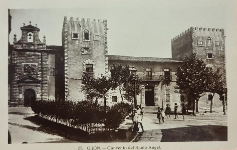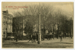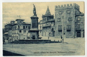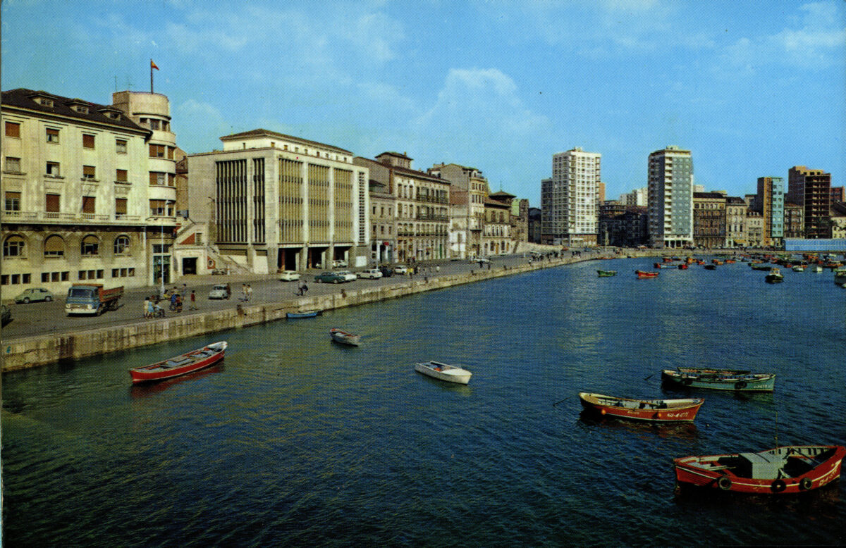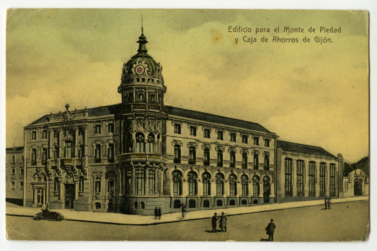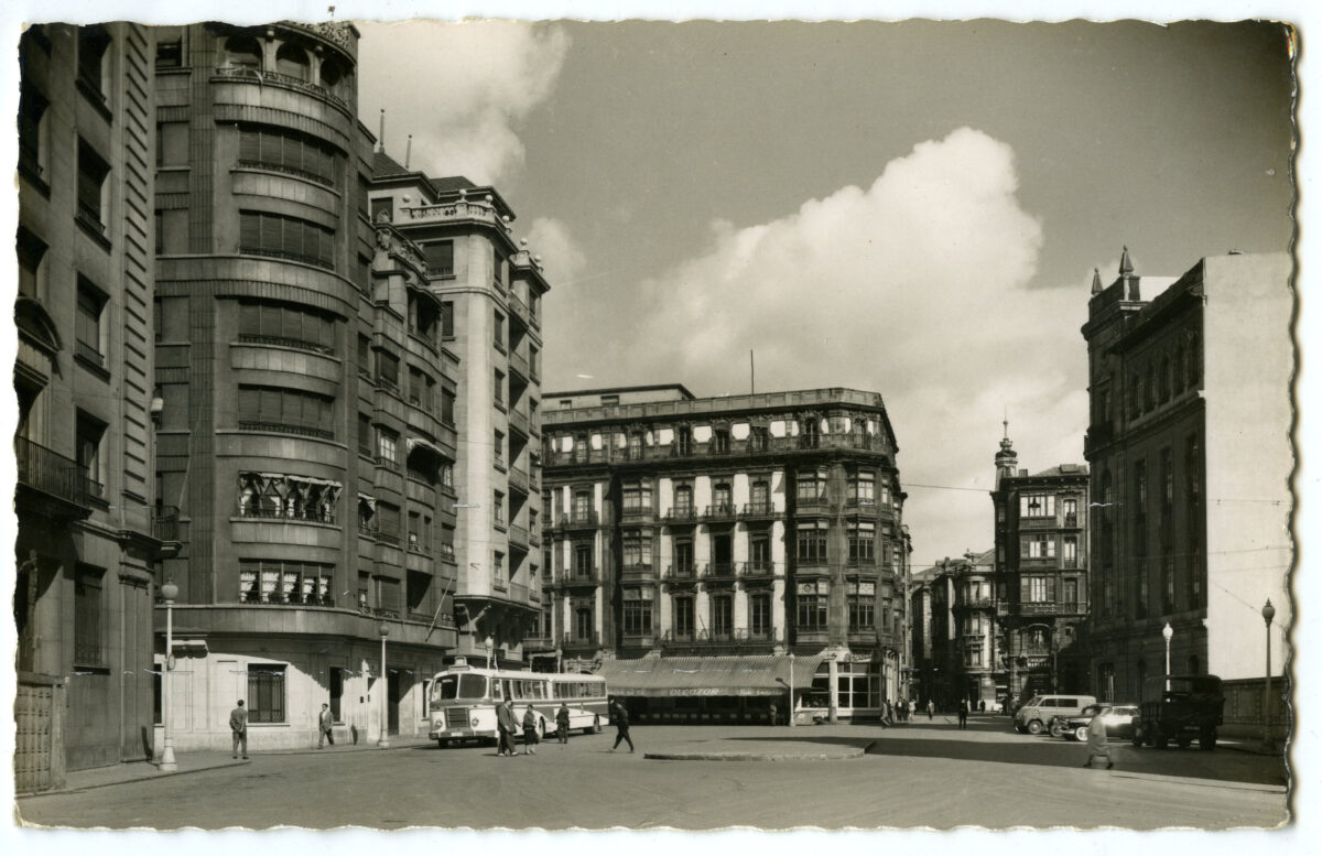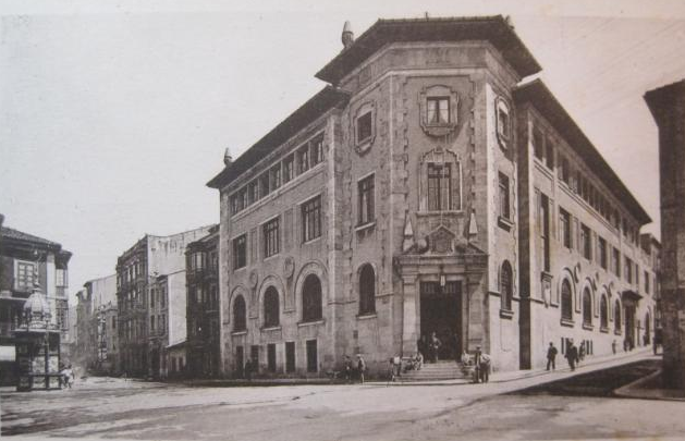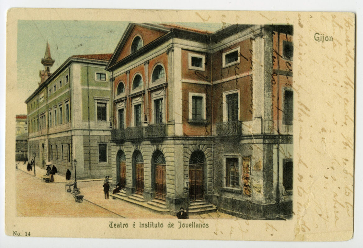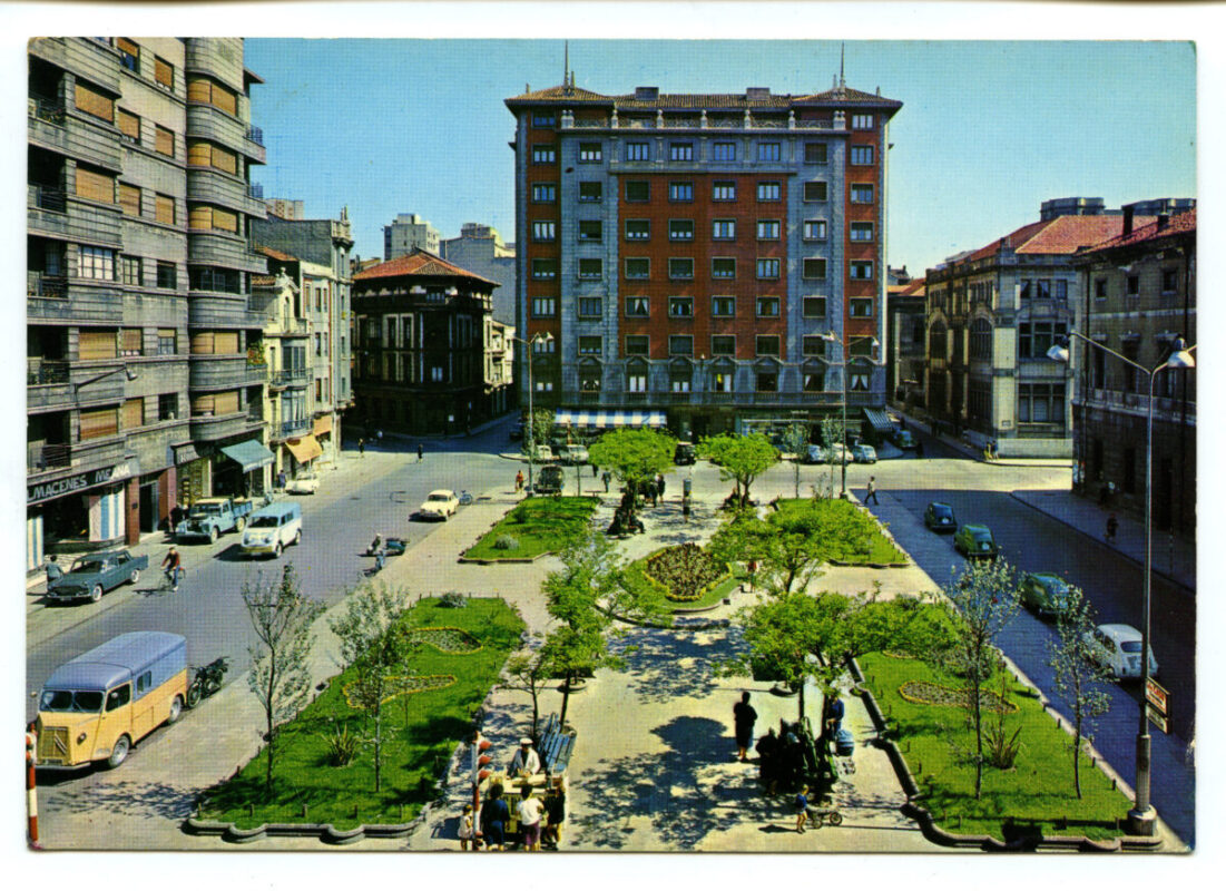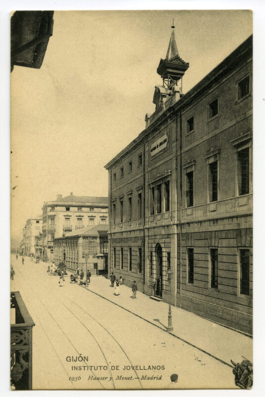 En los años que siguen, se procede a un remozamiento del caserío y al macizamiento de ese núcleo central que se había convertido en el corazón de la ciudad, y que coincidía con la zona delimitada por el «Plan de Mejoras» propuesto por Jove llanos. En él se asienta la pujante burguesía y se radican los establecimientos que responden a las demandas crecientes del sector terciario. Bancos, hoteles, comercios, teatros, mercados, edificios de viviendas, etc., de nueva construcción, suplantan a viejas construcciones o llenan solares vacíos, dando nuevo aire de ciudad burguesa a un peque ño número de calles -Corrida, Moros, San Bernardo, Jovellanos, etc.-, que serán el tema recurrente de la mayoría de las postales que por entonces se editan.