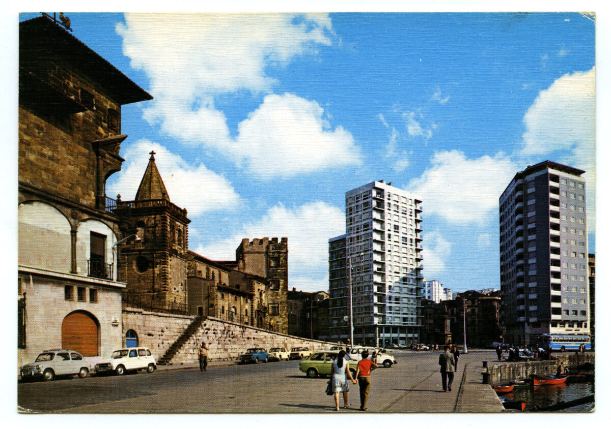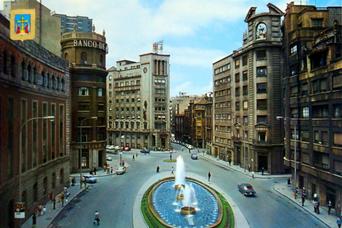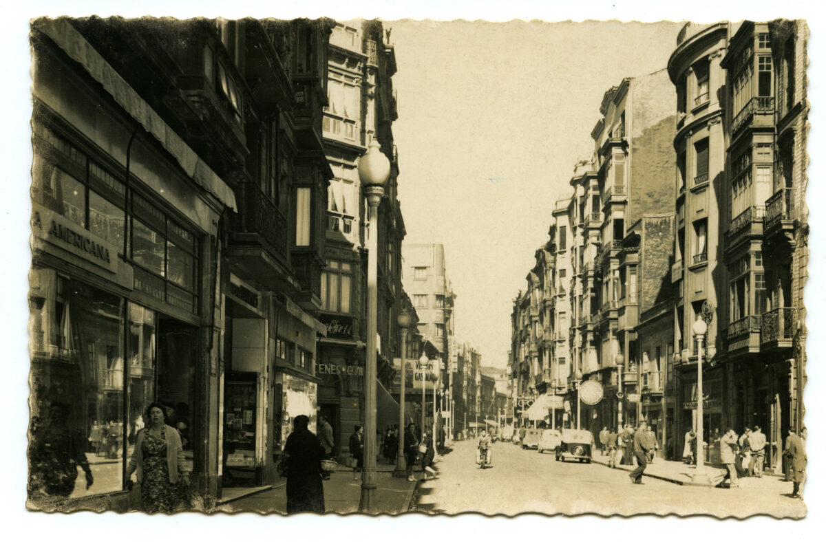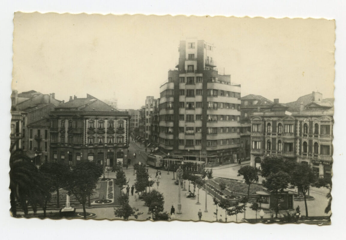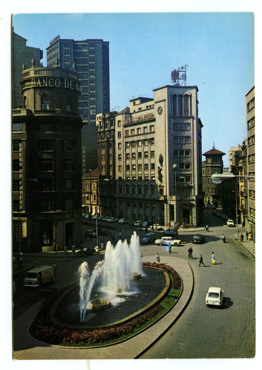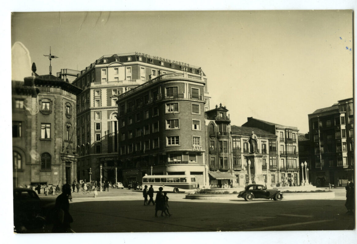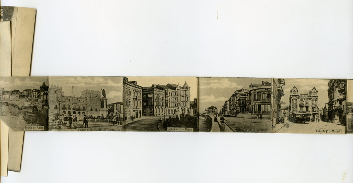 En los años que siguen, se procede a un remozamiento del caserío y al macizamiento de ese núcleo central que se había convertido en el corazón de la ciudad, y que coincidía con la zona delimitada por el «Plan de Mejoras» propuesto por Jove llanos. En él se asienta la pujante burguesía y se radican los establecimientos que responden a las demandas crecientes del sector terciario. Bancos, hoteles, comercios, teatros, mercados, edificios de viviendas, etc., de nueva construcción, suplantan a viejas construcciones o llenan solares vacíos, dando nuevo aire de ciudad burguesa a un peque ño número de calles -Corrida, Moros, San Bernardo, Jovellanos, etc.-, que serán el tema recurrente de la mayoría de las postales que por entonces se editan.
