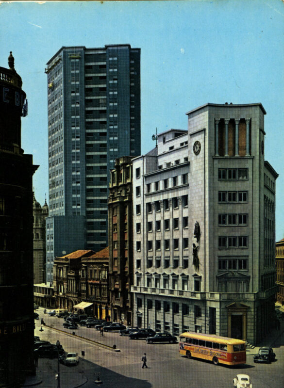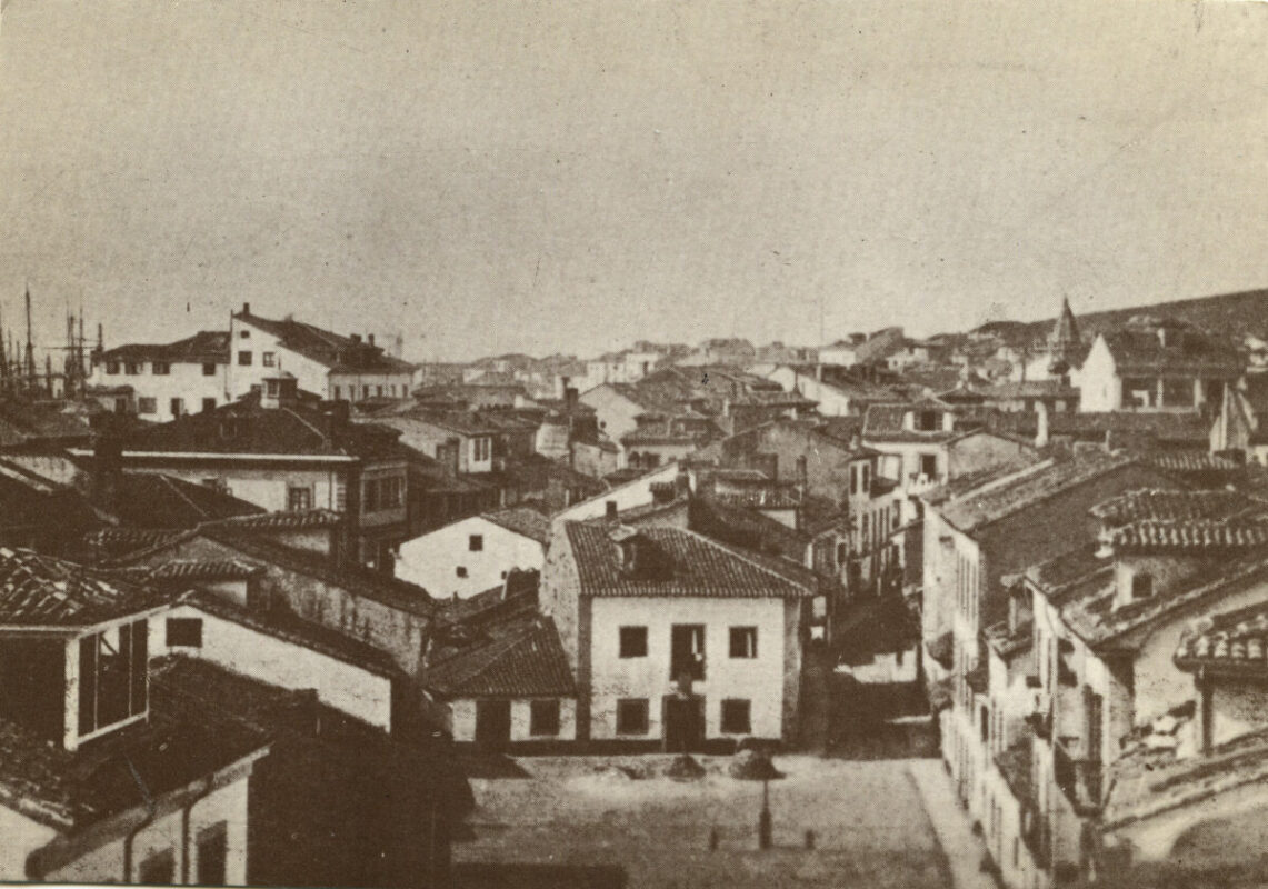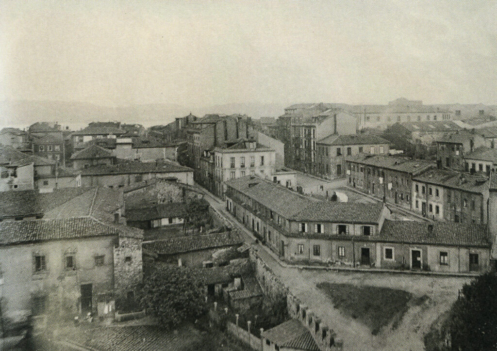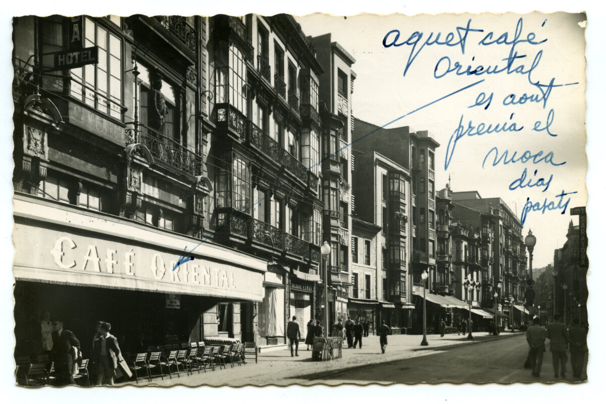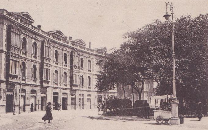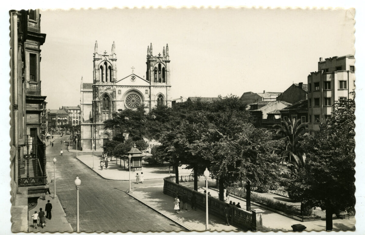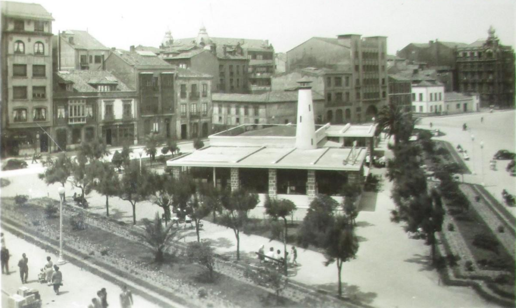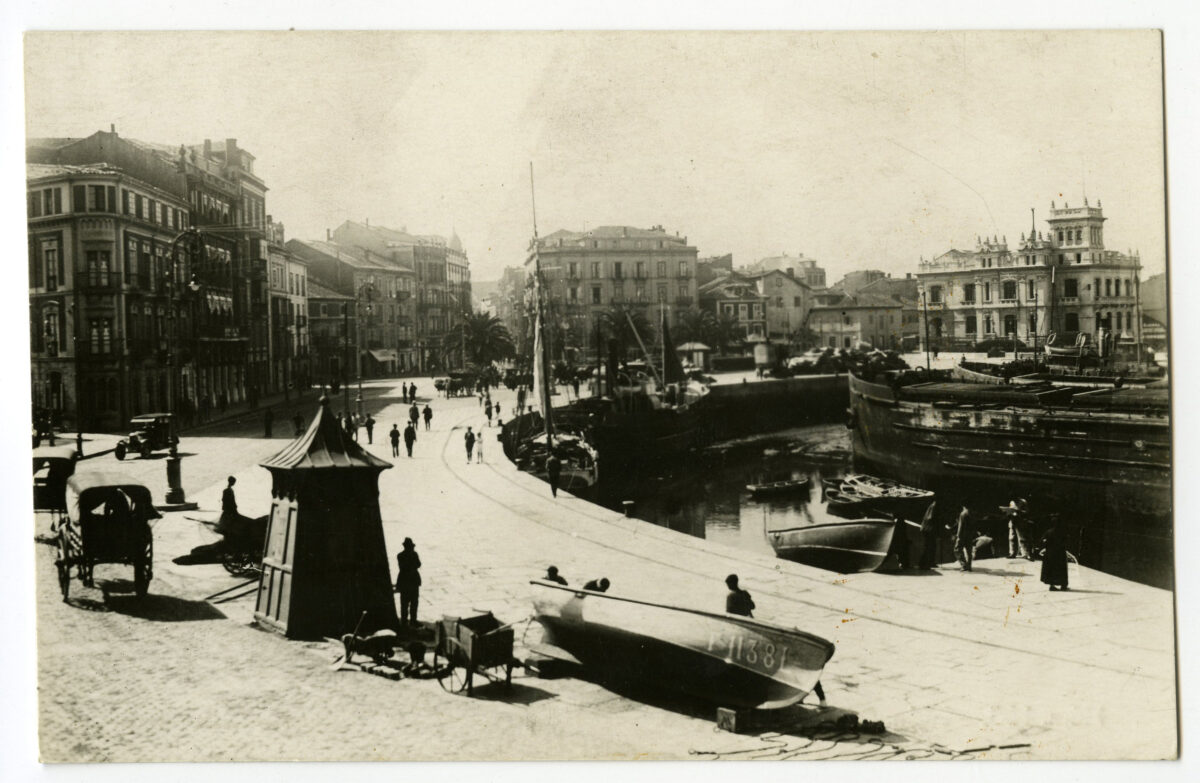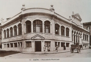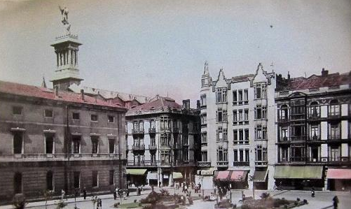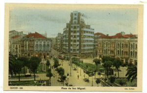 En los años que siguen, se procede a un remozamiento del caserío y al macizamiento de ese núcleo central que se había convertido en el corazón de la ciudad, y que coincidía con la zona delimitada por el «Plan de Mejoras» propuesto por Jove llanos. En él se asienta la pujante burguesía y se radican los establecimientos que responden a las demandas crecientes del sector terciario. Bancos, hoteles, comercios, teatros, mercados, edificios de viviendas, etc., de nueva construcción, suplantan a viejas construcciones o llenan solares vacíos, dando nuevo aire de ciudad burguesa a un peque ño número de calles -Corrida, Moros, San Bernardo, Jovellanos, etc.-, que serán el tema recurrente de la mayoría de las postales que por entonces se editan.