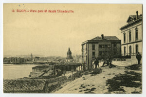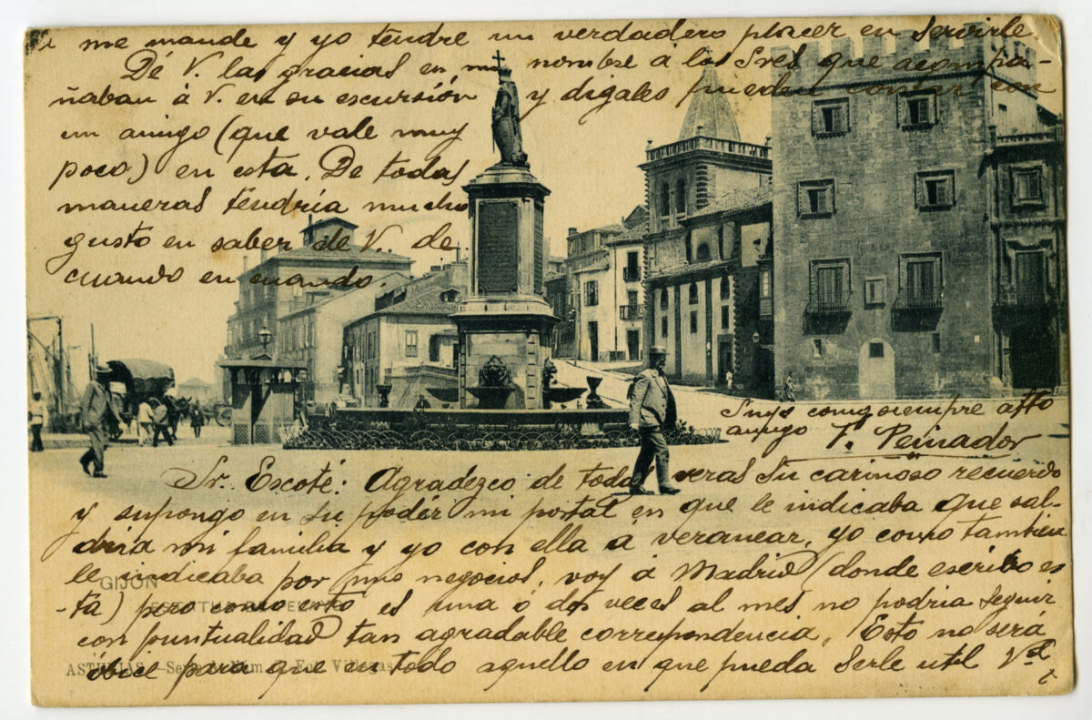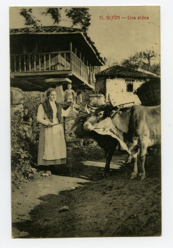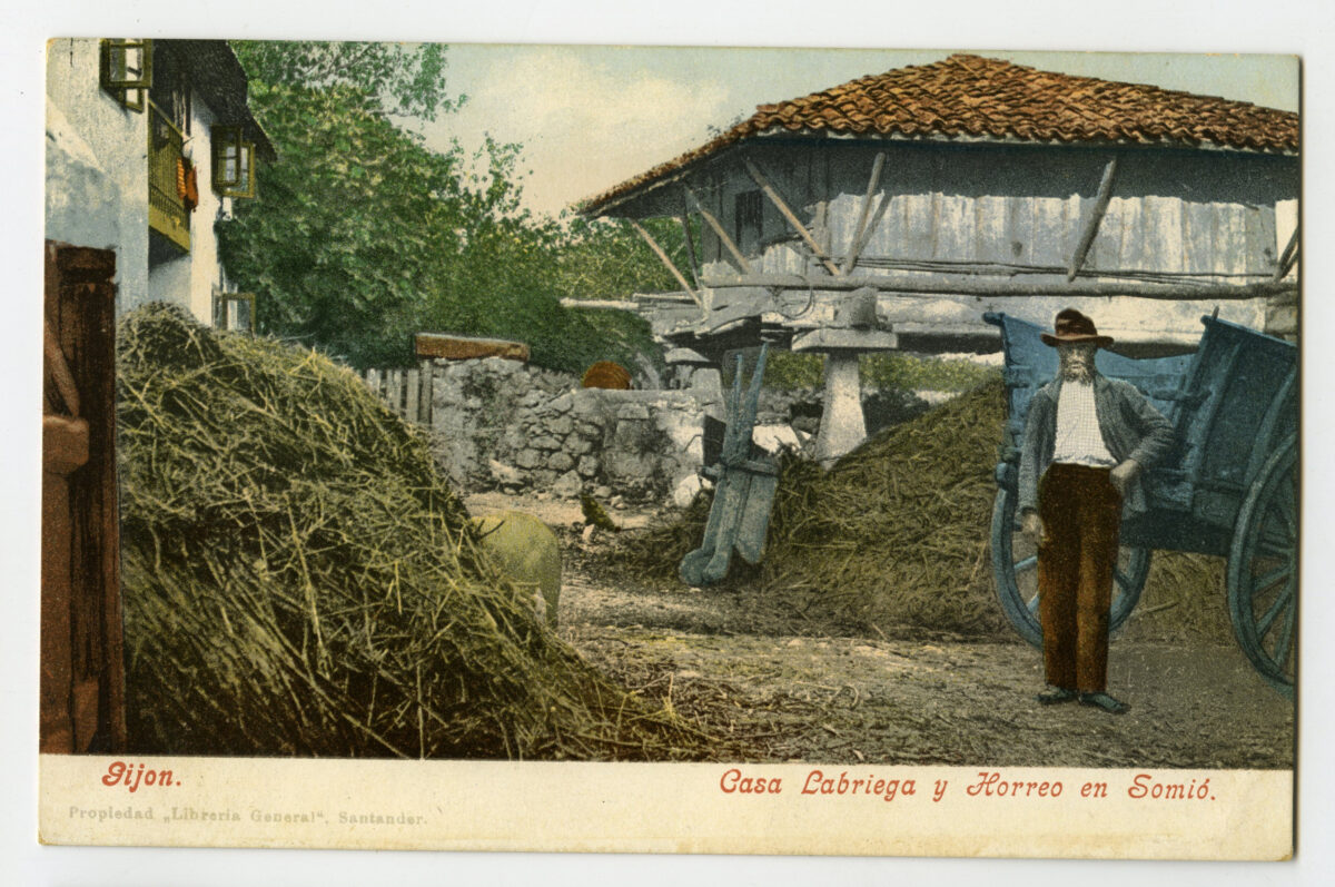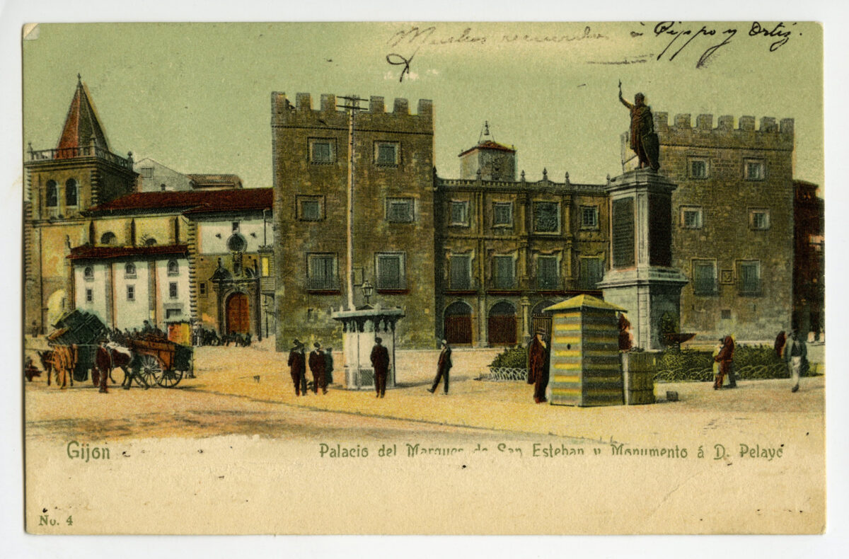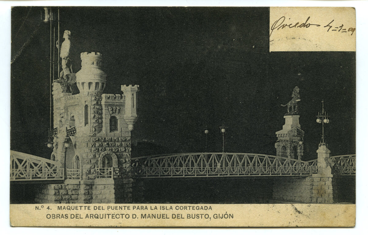 La tarjeta postal ofrece, por lo general, el lado bello o más halagüeño de la realidad urbana y también de la rural y del paisaje. Junto a las áreas o calles de urbanización reciente, son temas de interés para sus editores los nuevos edificios levantados por la burguesía -un ejemplo de ello es la que reproduce el edificio de la calle Cabrales, n º 18, obra del arquitecto Manuel del Busto para Celestino García López, construcción de 1903, que debió formar parte de una colección de postales con las obras del citado arquitecto, el muelle, el nuevo puerto del Musél, la playa y sus balnearios, las estatuas de Pelayo y Jovellanos en las plazas del Marqués y de 6 de Agosto, y toda imagen que dé idea de progreso y modernidad . Por el contrario, de la vieja ciudad sólo interesan los contados edificios de valor histórico (palacios de Valdés y Revillagigedo o la cárcel vieja), pero no las degradadas viviendas que conforman el casco del barrio de Cimadevilla; de igual forma, tampoco son reproducidos los barrios obreros ni otros espacios marginales.
