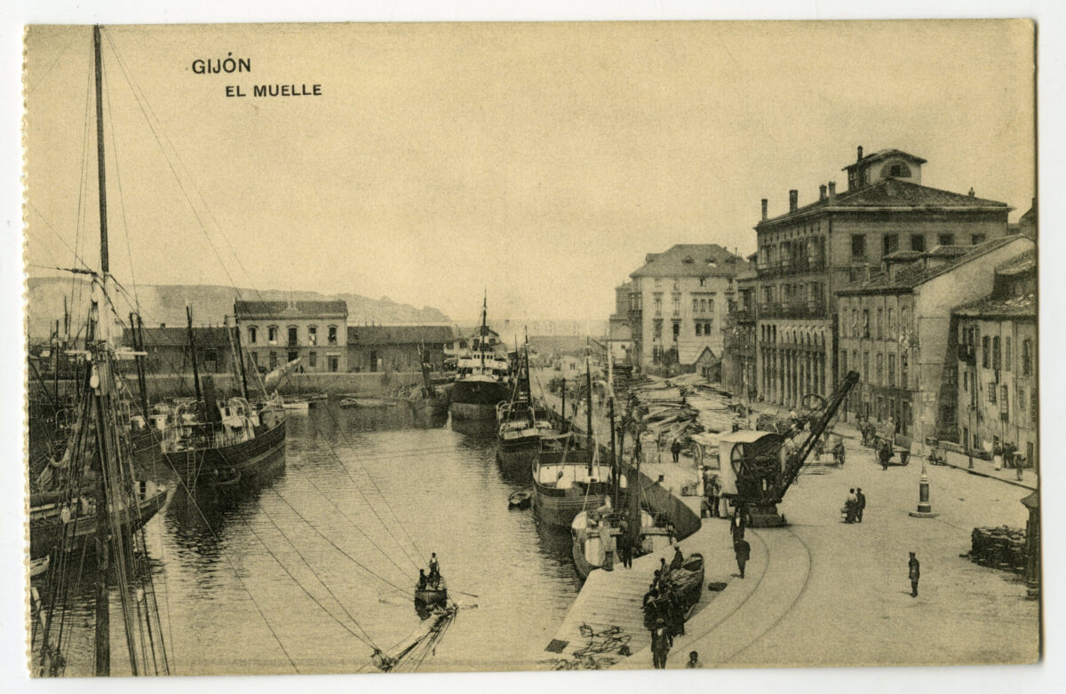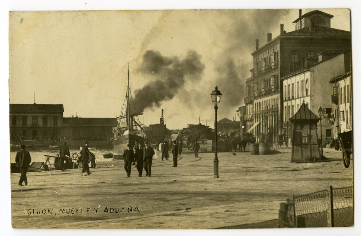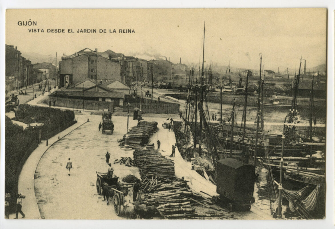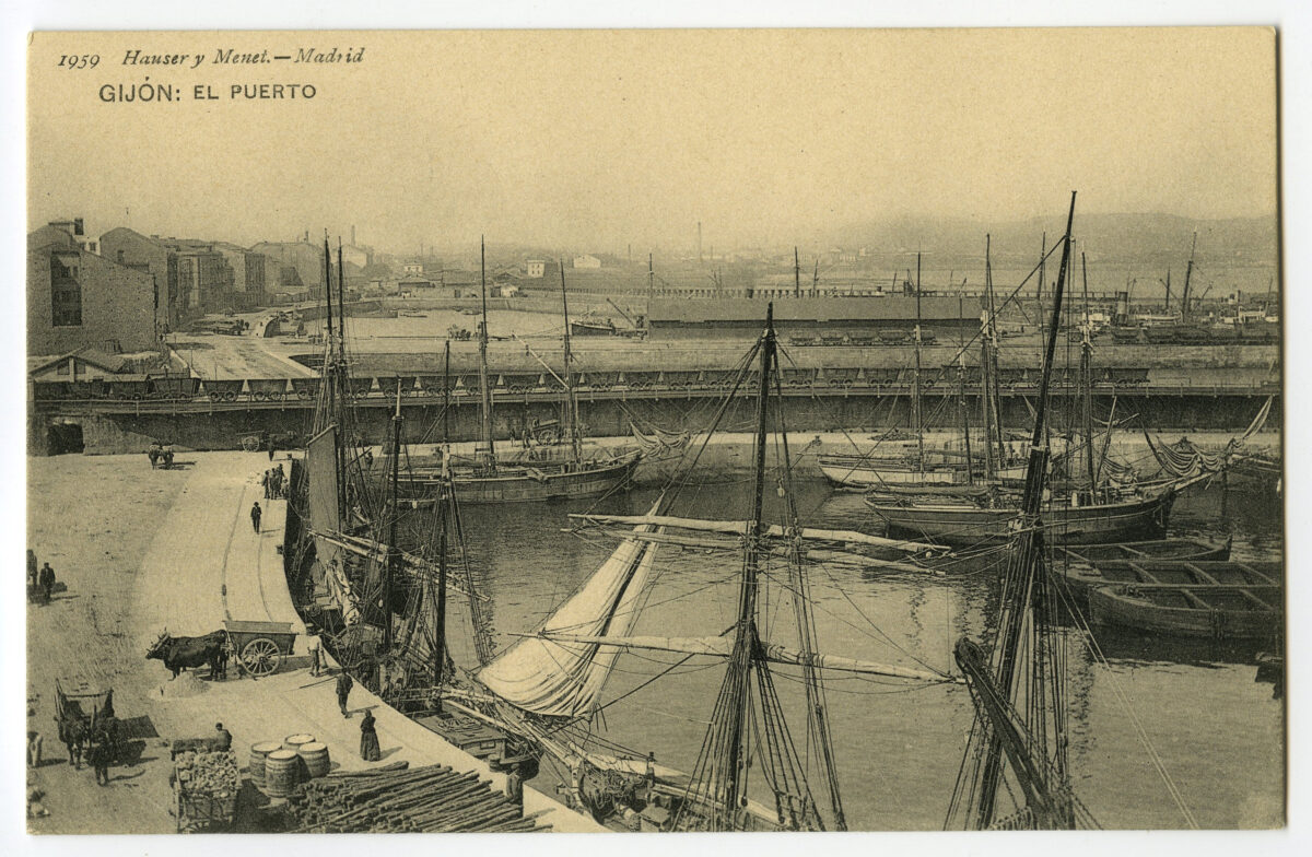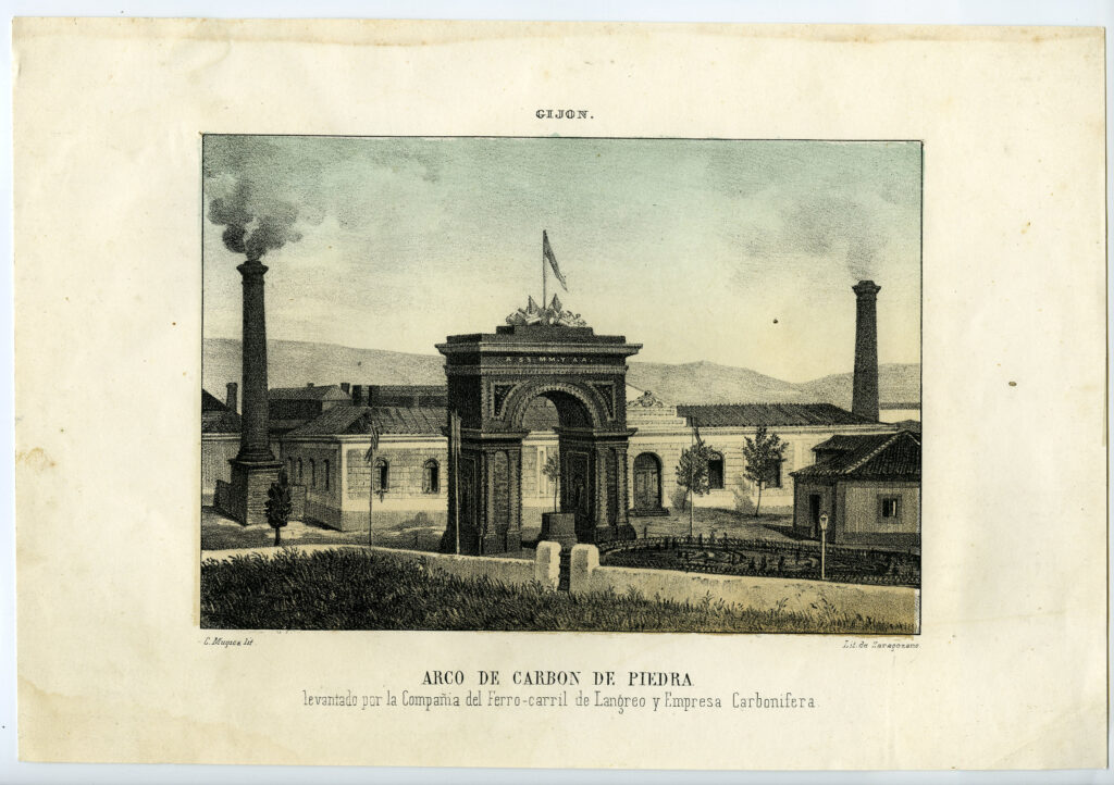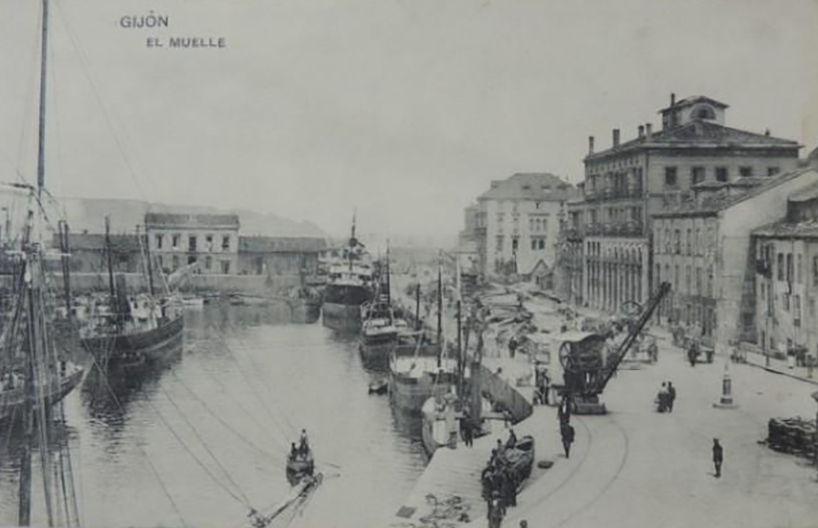 La construcción a mediados del XIX de la llamada «carretera carbonera», primero, y del Ferrocarril de Langreo, después, encaminó hacia Gijón la producción carbonera de la cuenca central, generando un importante tráfico portuario que convertiría a su puerto, a pesar de las deficiencias que presentaba, en uno de los más activos de la orla cantábrica. También por las mismas fechas dio comienzo el proceso industrializador, que irá cobrando impulso según avanza la segunda mitad del siglo, consolidando así la doble función portuaria e industrial de la villa gijonesa. A punto de acabar el siglo, en 1899, se celebraba en Gijón la Exposición Regional, en medio de un ambiente generalizado de optimismo.