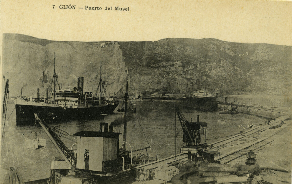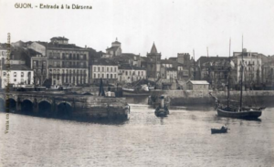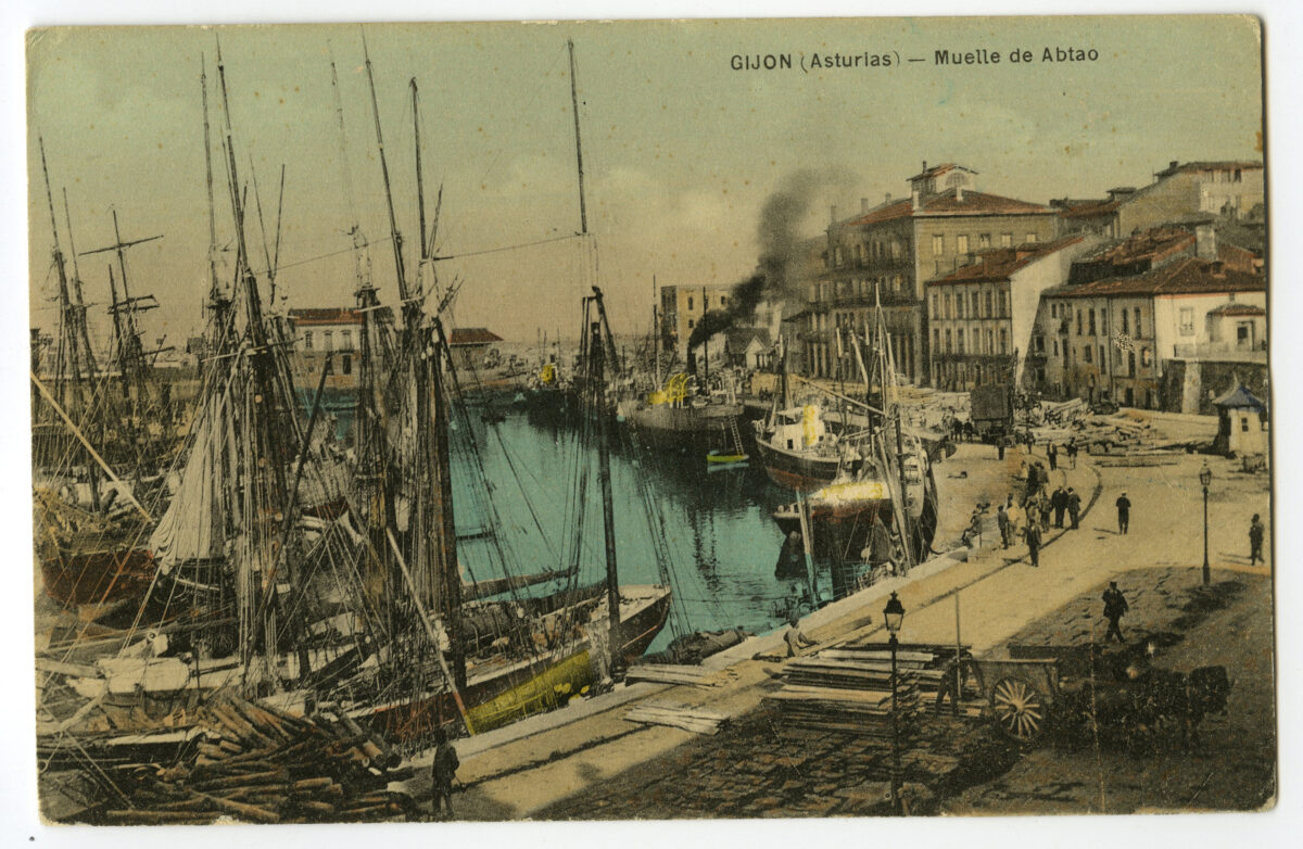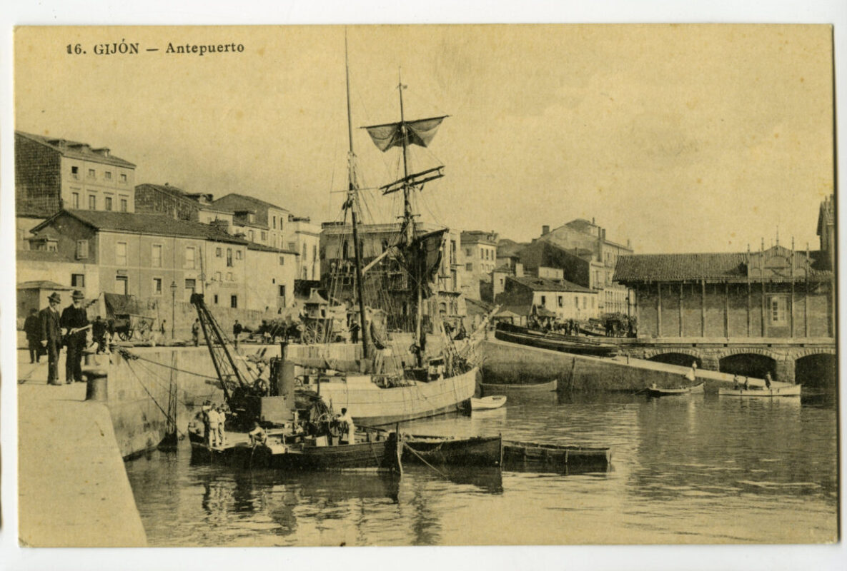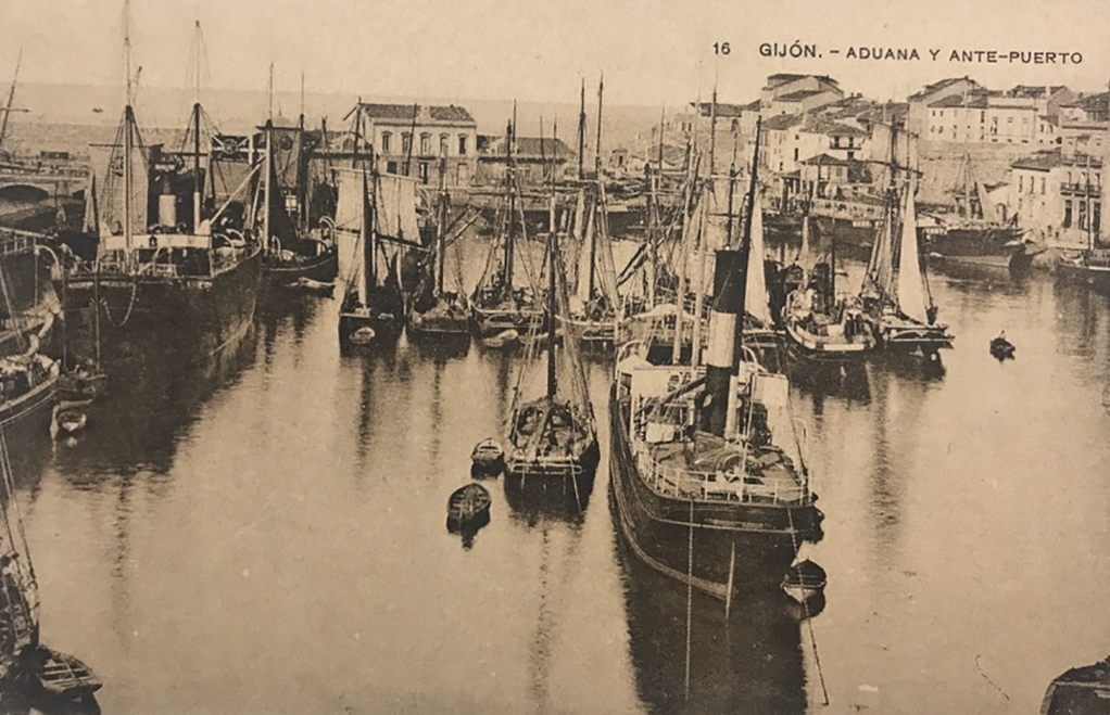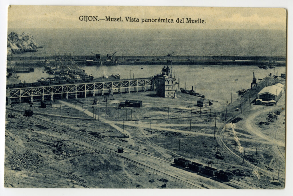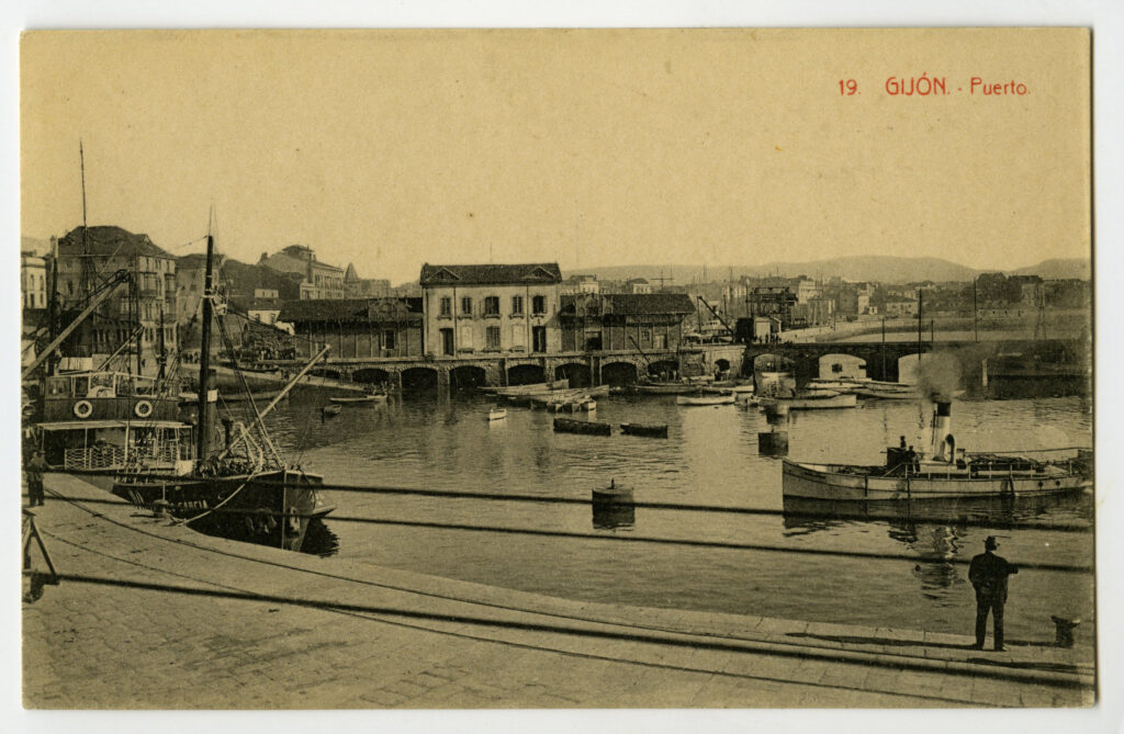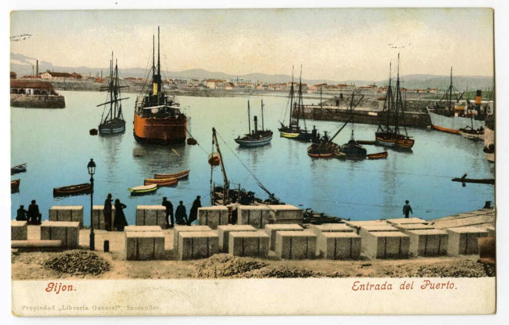 La construcción a mediados del XIX de la llamada «carretera carbonera», primero, y del Ferrocarril de Langreo, después, encaminó hacia Gijón la producción carbonera de la cuenca central, generando un importante tráfico portuario que convertiría a su puerto, a pesar de las deficiencias que presentaba, en uno de los más activos de la orla cantábrica. También por las mismas fechas dio comienzo el proceso industrializador, que irá cobrando impulso según avanza la segunda mitad del siglo, consolidando así la doble función portuaria e industrial de la villa gijonesa. A punto de acabar el siglo, en 1899, se celebraba en Gijón la Exposición Regional, en medio de un ambiente generalizado de optimismo.