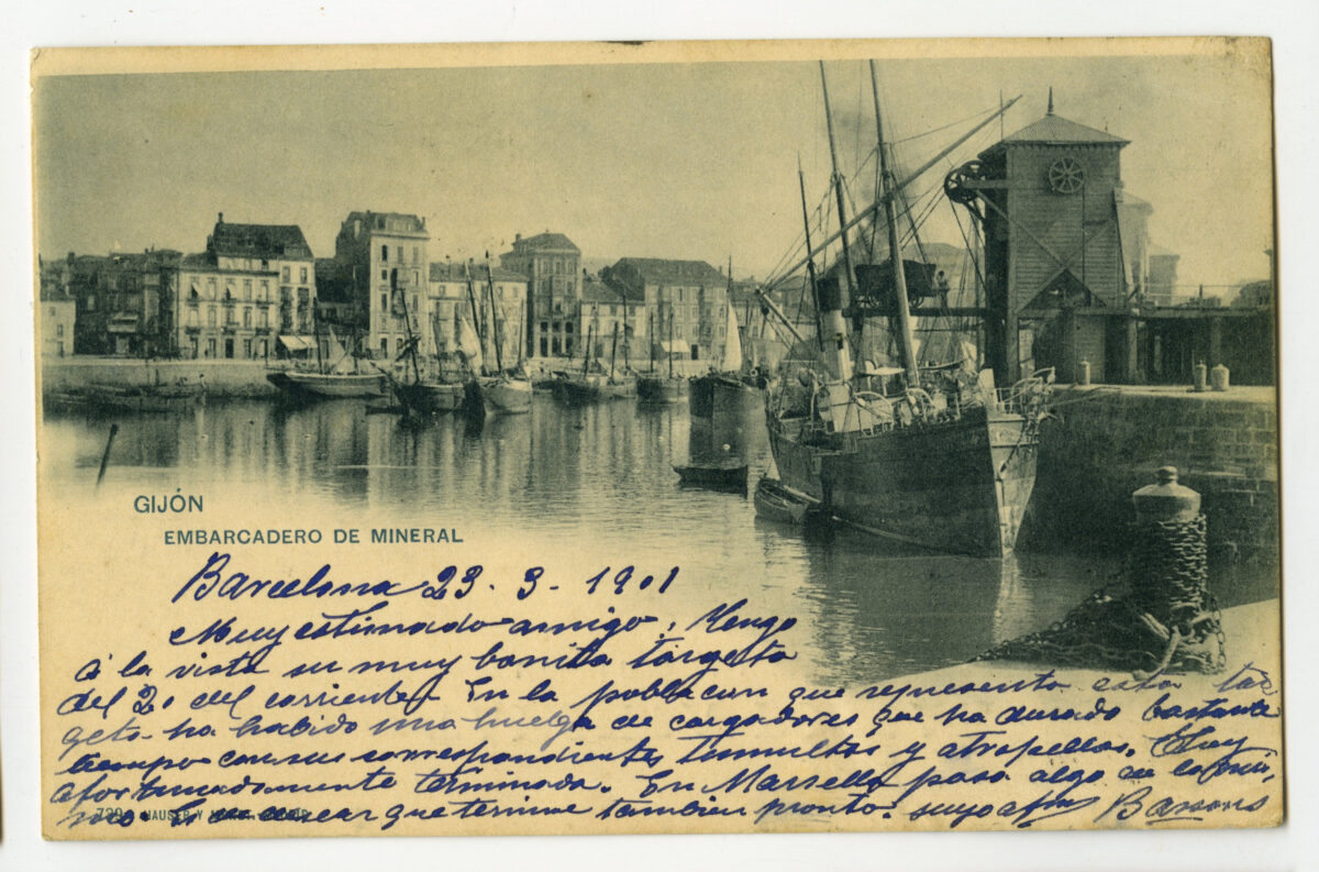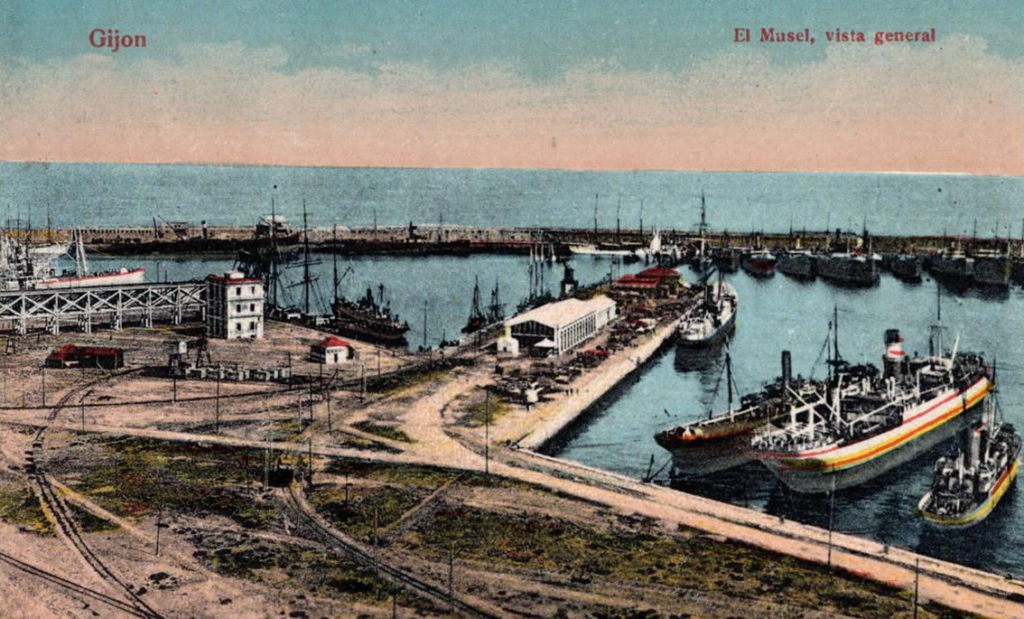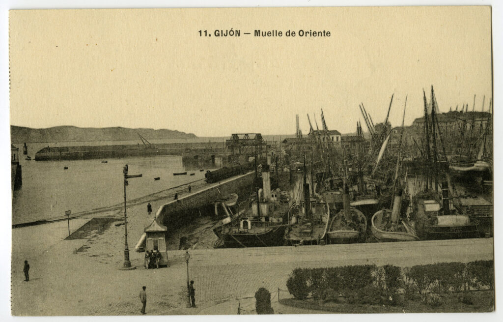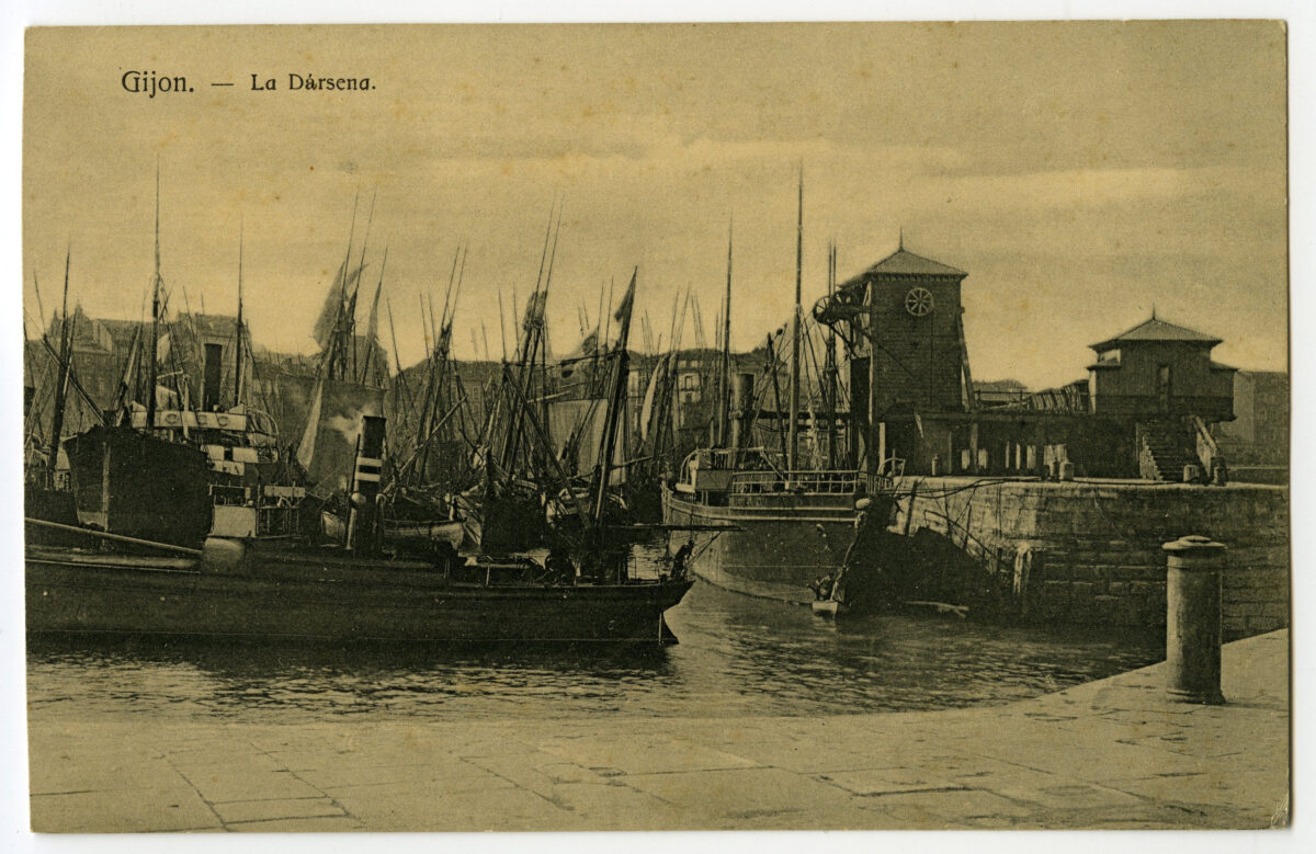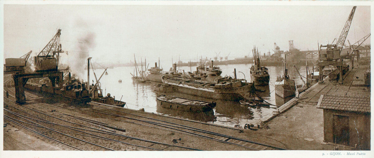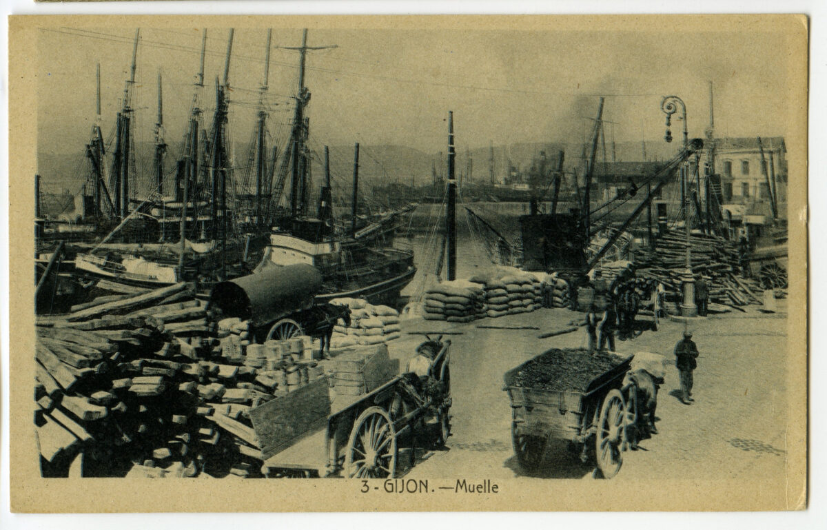 La construcción a mediados del XIX de la llamada «carretera carbonera», primero, y del Ferrocarril de Langreo, después, encaminó hacia Gijón la producción carbonera de la cuenca central, generando un importante tráfico portuario que convertiría a su puerto, a pesar de las deficiencias que presentaba, en uno de los más activos de la orla cantábrica. También por las mismas fechas dio comienzo el proceso industrializador, que irá cobrando impulso según avanza la segunda mitad del siglo, consolidando así la doble función portuaria e industrial de la villa gijonesa. A punto de acabar el siglo, en 1899, se celebraba en Gijón la Exposición Regional, en medio de un ambiente generalizado de optimismo.