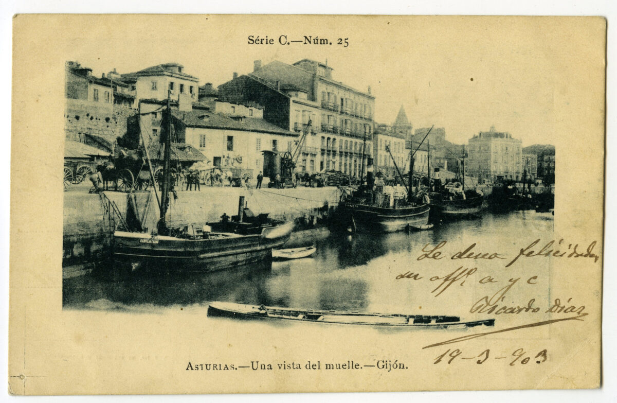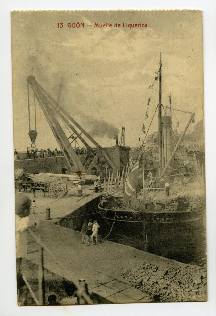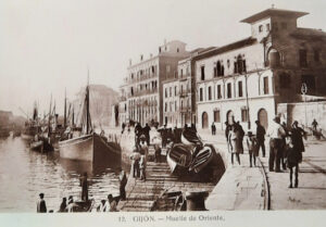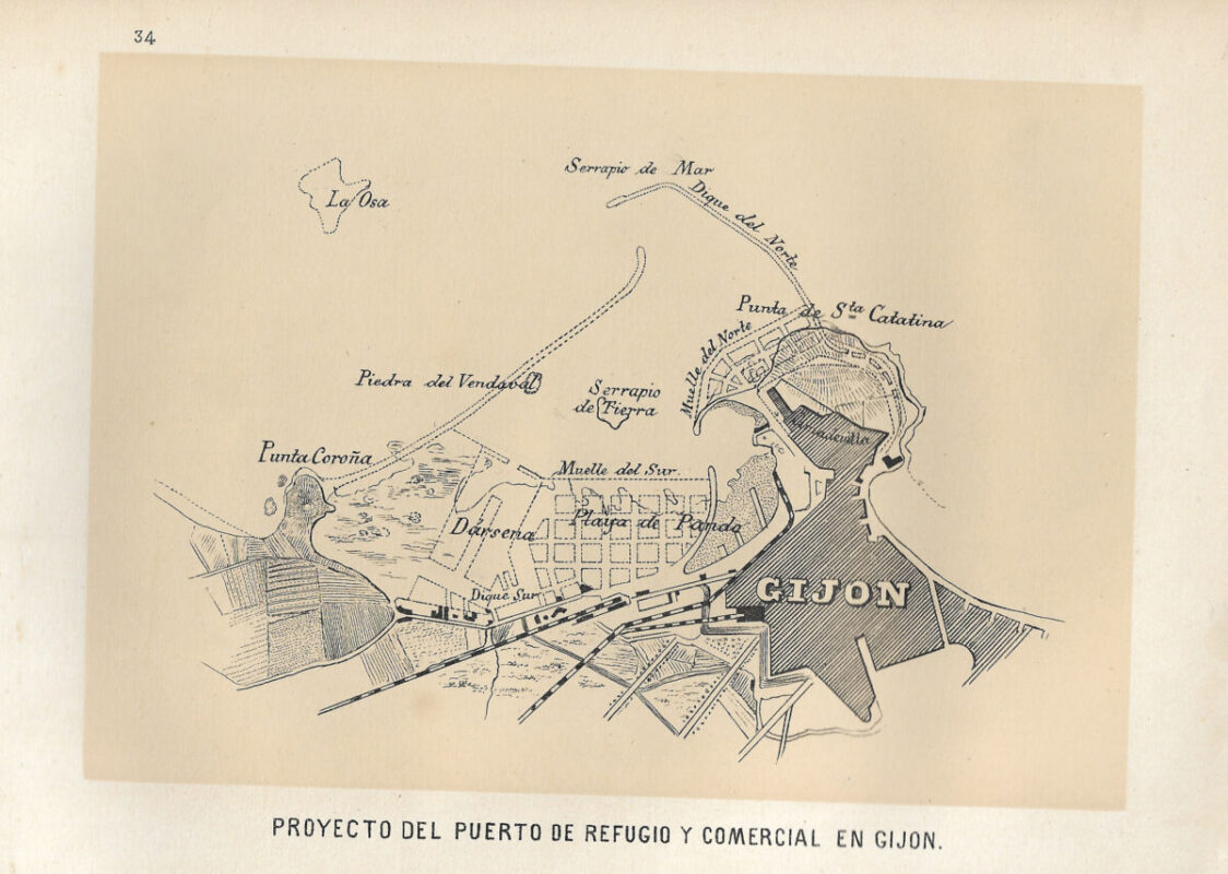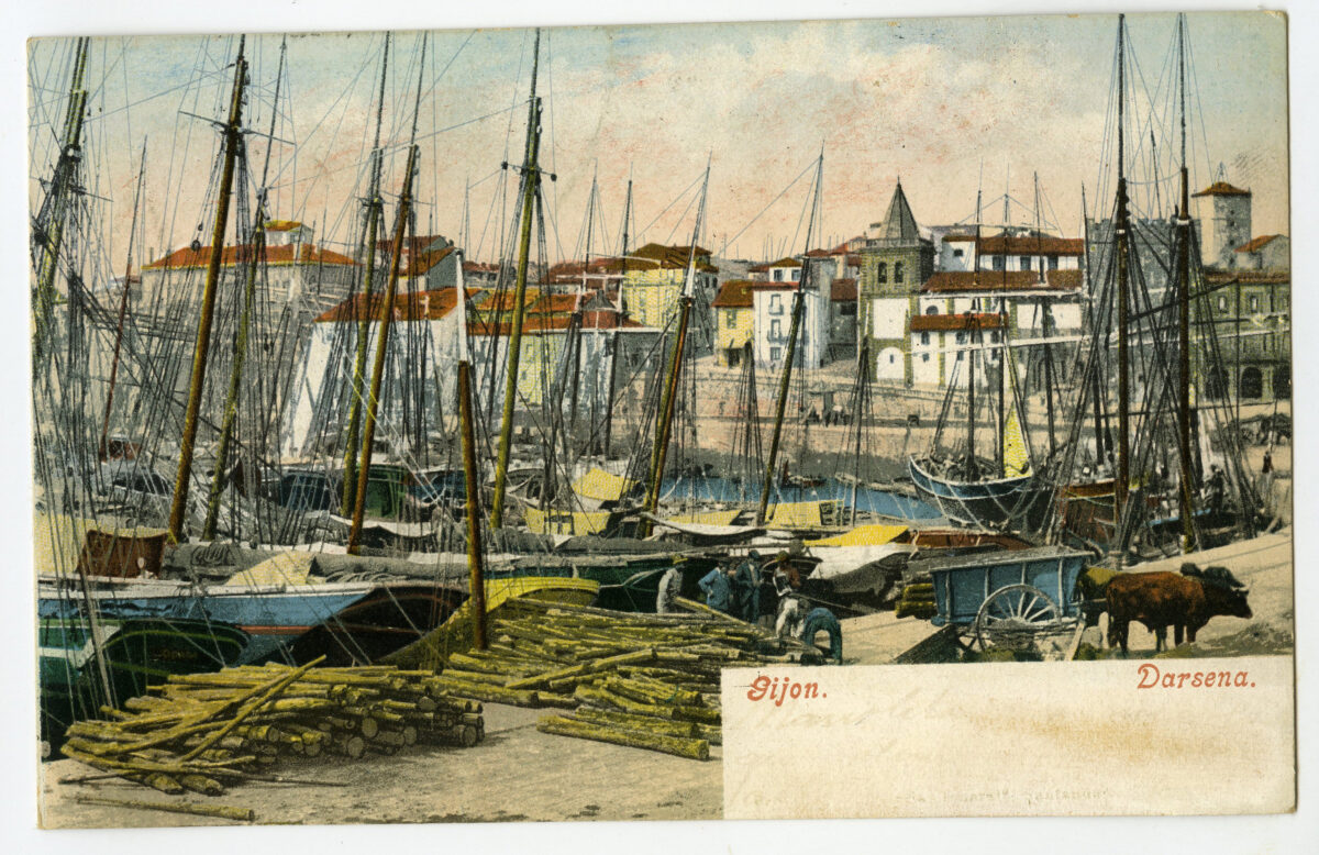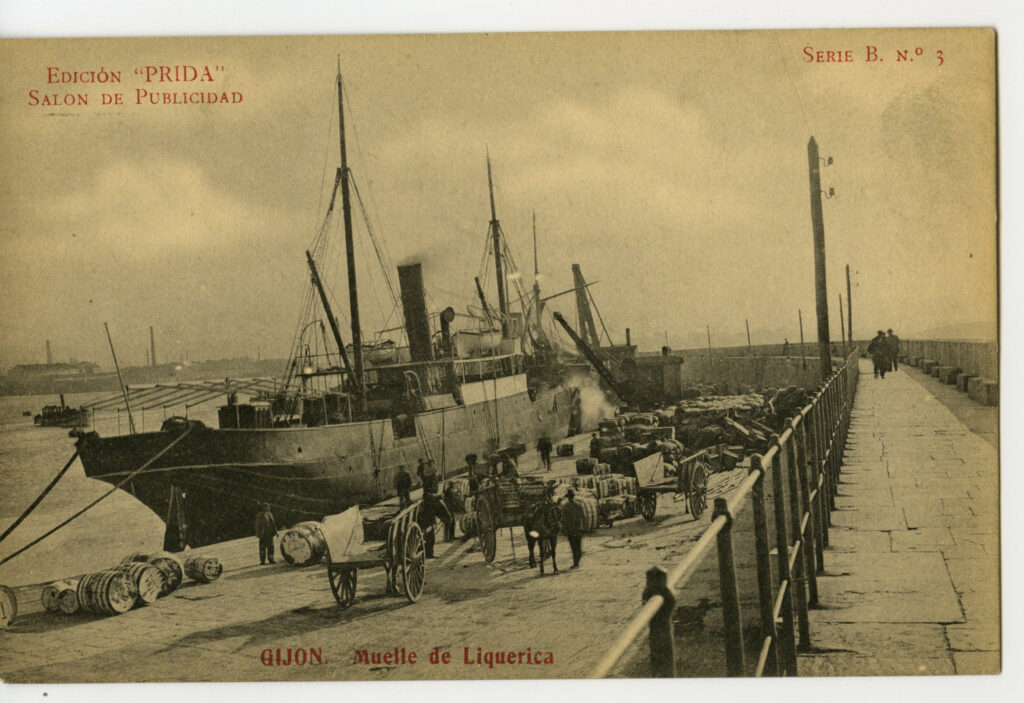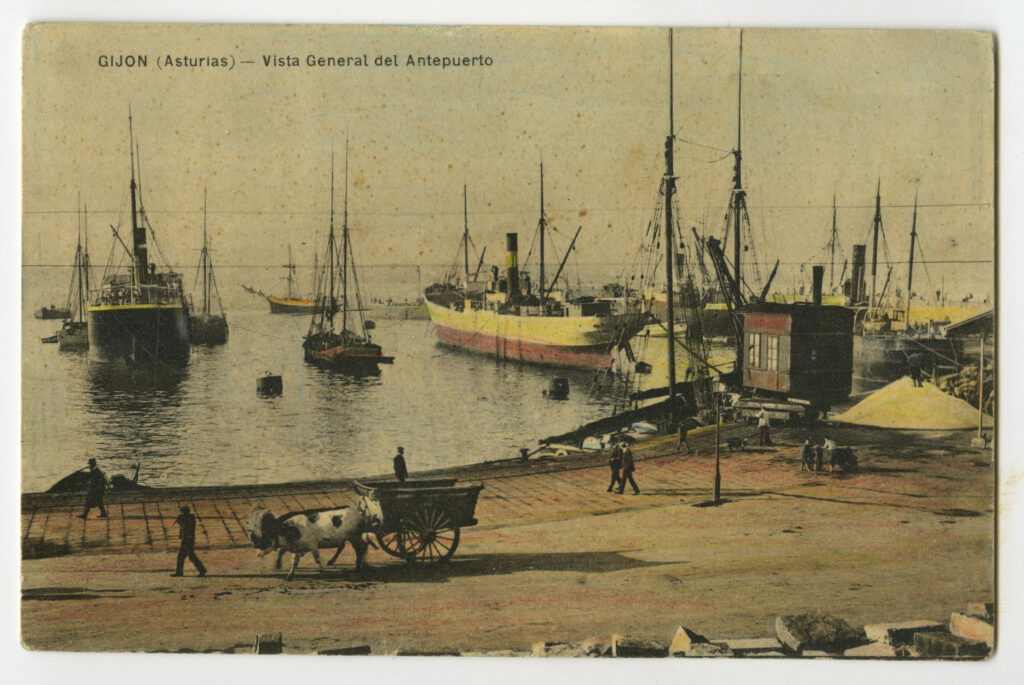 La construcción a mediados del XIX de la llamada «carretera carbonera», primero, y del Ferrocarril de Langreo, después, encaminó hacia Gijón la producción carbonera de la cuenca central, generando un importante tráfico portuario que convertiría a su puerto, a pesar de las deficiencias que presentaba, en uno de los más activos de la orla cantábrica. También por las mismas fechas dio comienzo el proceso industrializador, que irá cobrando impulso según avanza la segunda mitad del siglo, consolidando así la doble función portuaria e industrial de la villa gijonesa. A punto de acabar el siglo, en 1899, se celebraba en Gijón la Exposición Regional, en medio de un ambiente generalizado de optimismo.