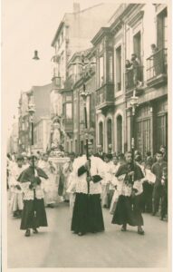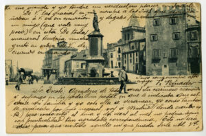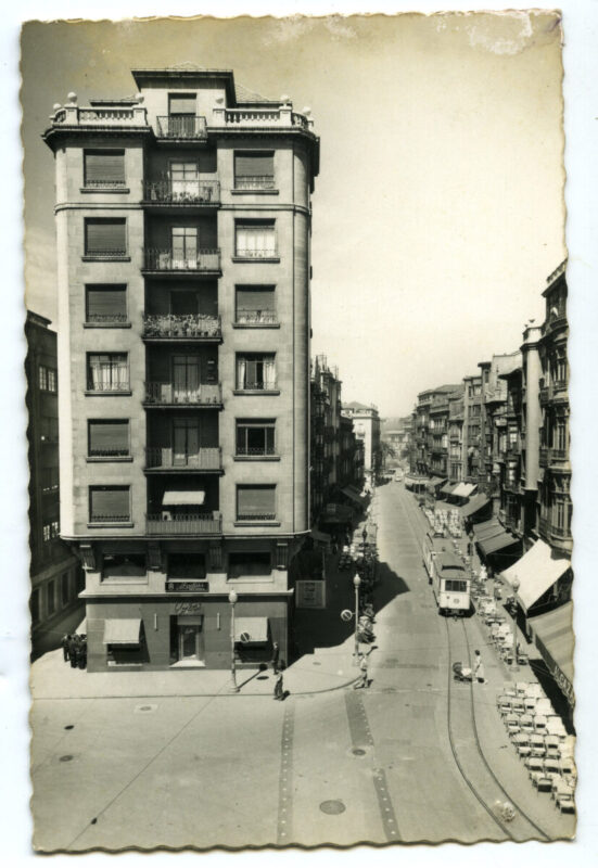 La calle Corrida, que nace en la de Trinidad y muere en la plaza de 6 de Agosto, Auténtico corazón humano, social y económico de la ciudad, a través de las tarjetas reproducidas se pueden seguir los cambios producidos en su perfil urbano, constructivo y hasta en el modo de vida de las gentes que por ella pululan.