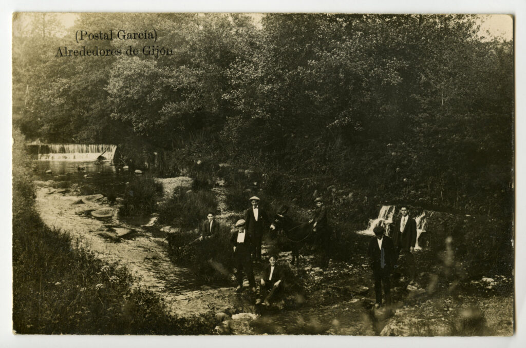 Se reúnen en esta colección más de 1.400 imágenes de tarjetas postales sobre la ciudad de Gijón y sus alrededores, que cubren un arco temporal de algo más de medio siglo, desde 1890 aproximadamente, hasta la década de los sesenta, aunque en su inmensa mayoría corresponden a los veinte primeros años del siglo XX.